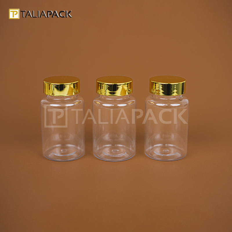 Deskripsi Produk untuk Botol Obat Clear 120 ml – Tutup Gold