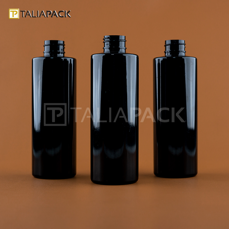 Botol PET Hitam 200ml Rata Neck 24mm